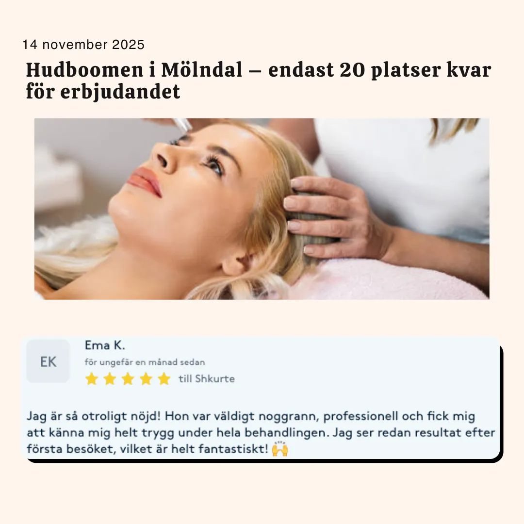 Synliga förbättringar redan efter första besöket - Många upplever mer lyster, jämnare textur och en friskare hudton direkt efter sin första behandling.
